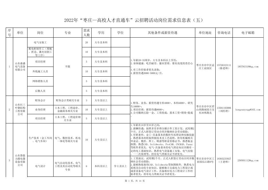 2022年“枣庄—高校人才直通车”云招聘活动岗位需求信息表(五).xls