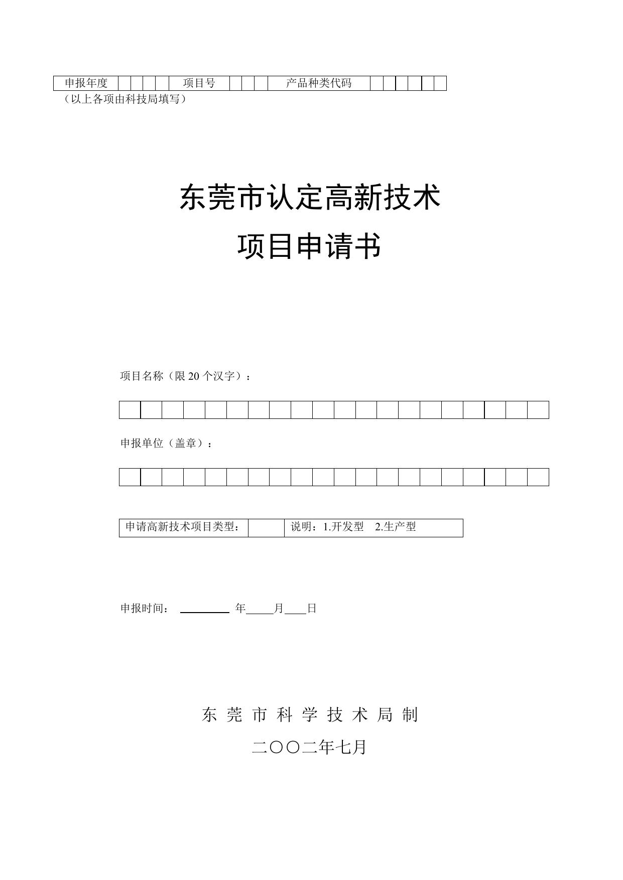 东莞市高新技术项目申请书.doc