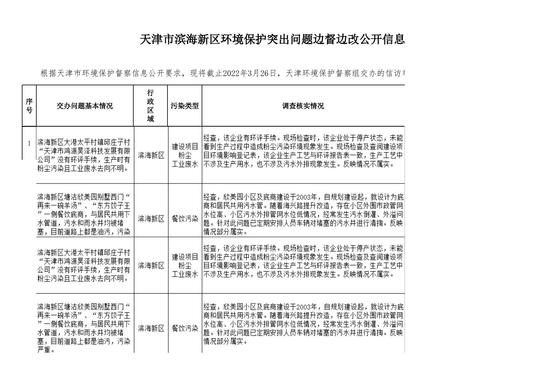 市滨海新区环保问题信息公开第813批.xls