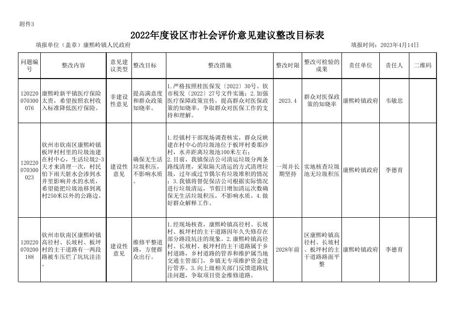 康熙岭镇2022年度设区市社会评价意见建议整改目标表.xlsx