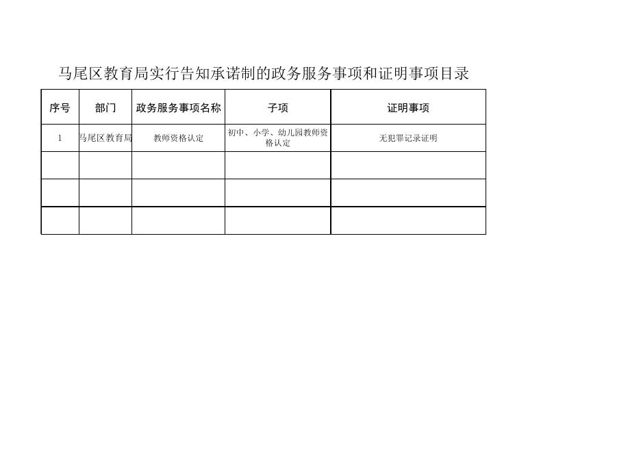 马尾区教育局实行告知承诺制的政务服务事项和证明事项目录.xls