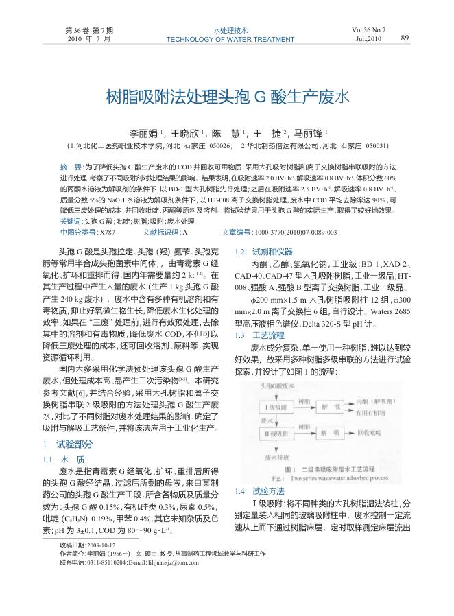 树脂吸附法处理头孢G酸生产废水.pdf