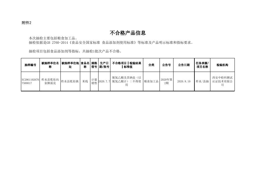 附件2:食品监督抽检不合格产品信息Excel.xls