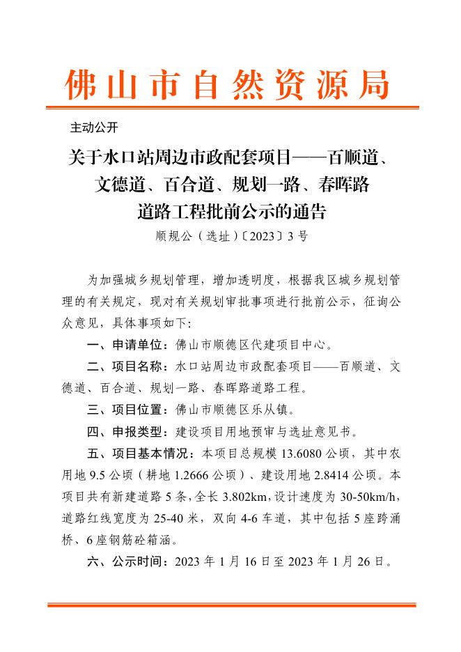 顺规公(选址)〔2023〕3号(关于水口站周边市政配套项目——百顺道、文德道、百合道、规划一路、春晖路道路工程批前公示的通告).pdf