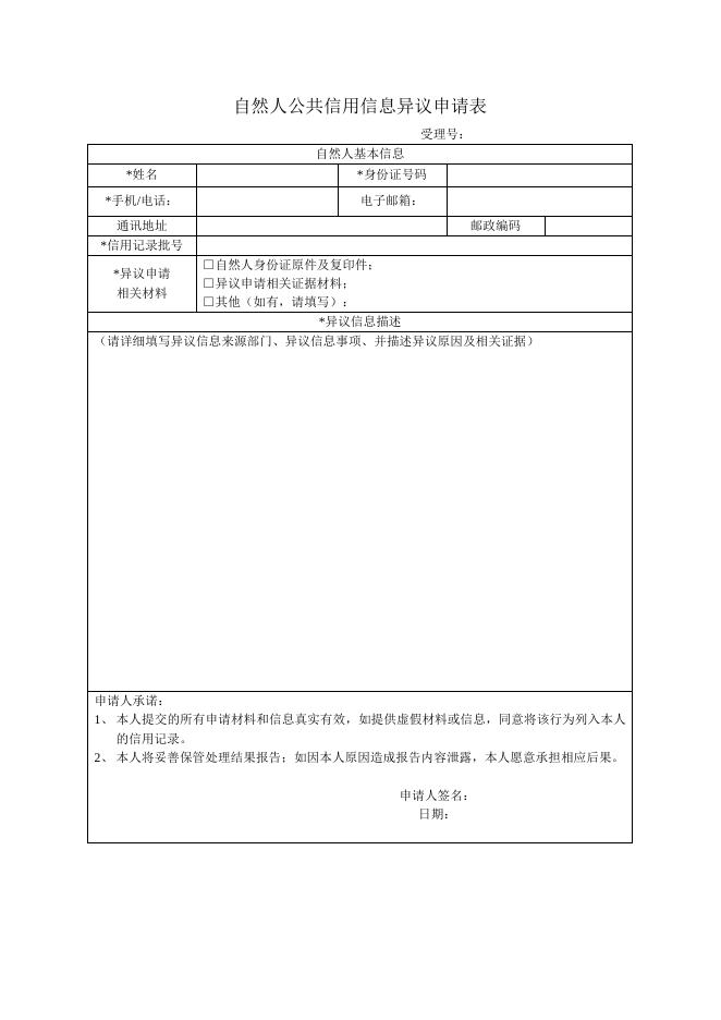 杭州市自然人公共信用信息异议申请表.docx