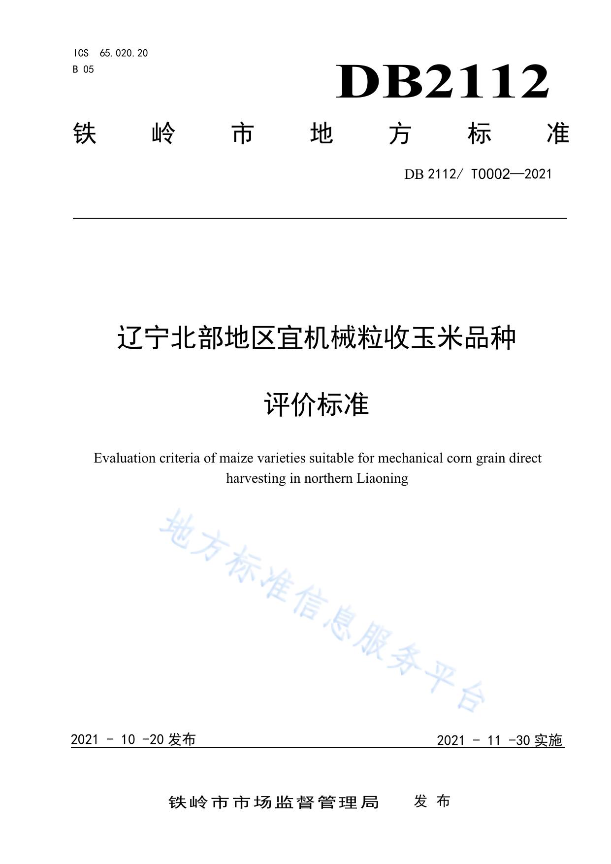 辽宁北部地区宜机械粒收玉米品种评价标准