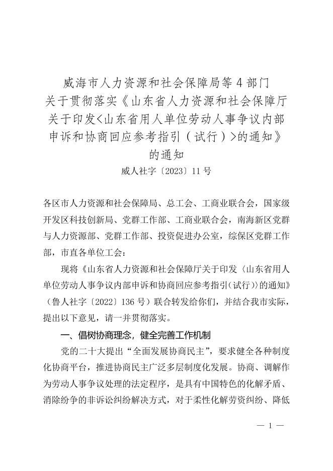 威海市人民政府 【文件库】部门文件 威海市人力资源和社会保障局等4部门关于贯彻落实《山东省人力资源和社会保障厅关于印发的通知》的通知.doc