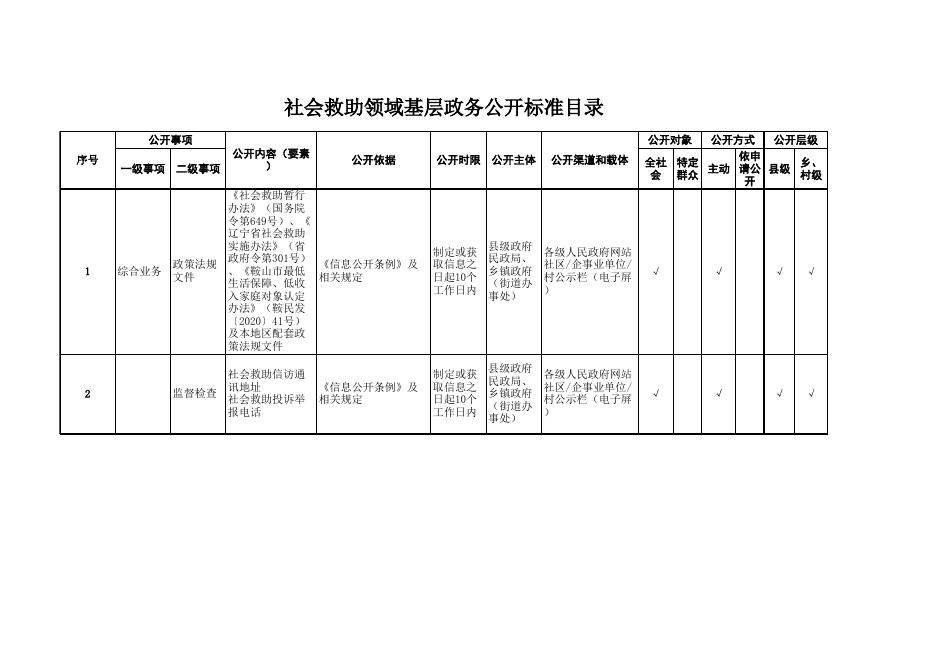 鞍山市社会救助领域基层政务公开标准目录.xlsx