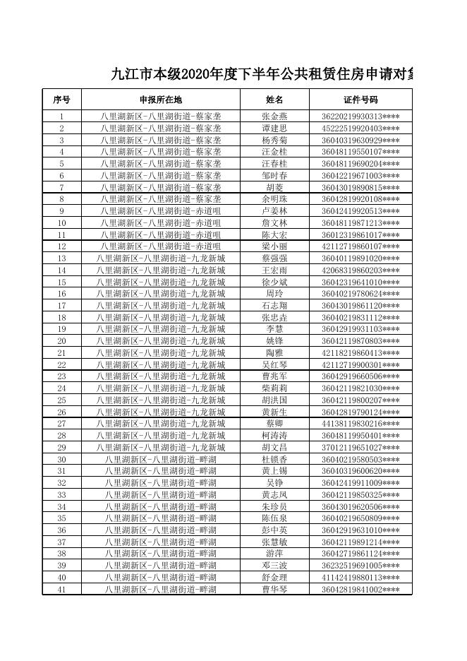 九江市本级2020年度下半年公共租赁住房申请对象公示名单.xlsx