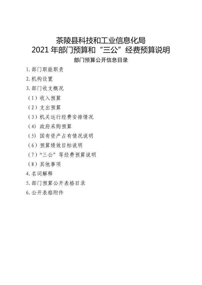 茶陵县科技和工业信息化局2021年部门预算和“三公”经费预算说明.pdf