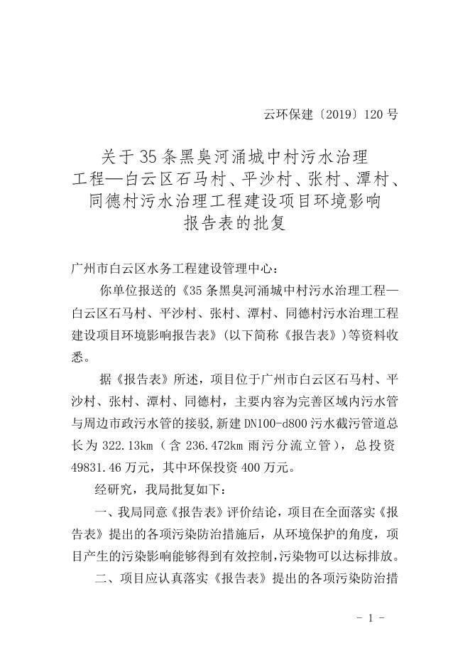 建[2019]120号35条黑臭河涌城中村污水治理-白云区石马村、平沙村、张村、潭村、同德村污水治理工程.doc