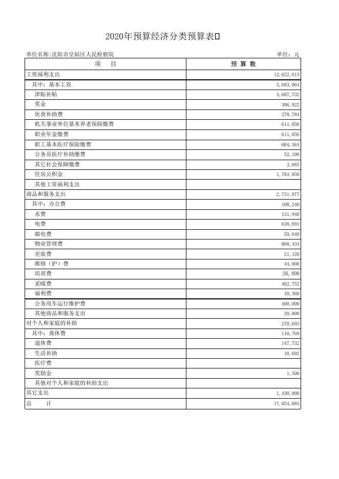 沈阳皇姑区人民检察院 2020年部门预算 (含“三公”经费预算)-区检察院-沈阳市皇姑区人民政府.xls
