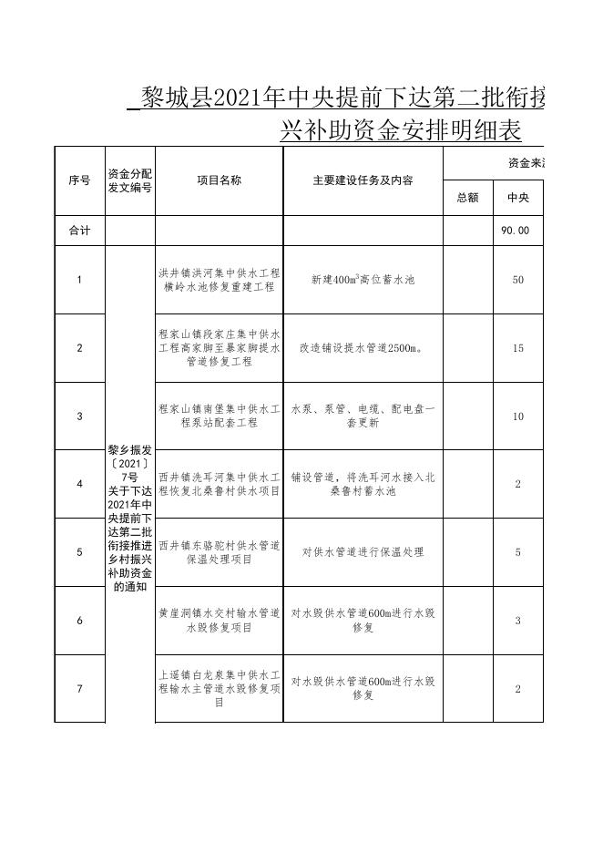 黎城县2021年中央提前下达第二批衔接推进乡村振兴补助资金安排明细表(90万).xlsx