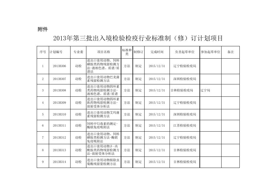 2013年第三批出入境检验检疫行业标准制修订计划项目.xls