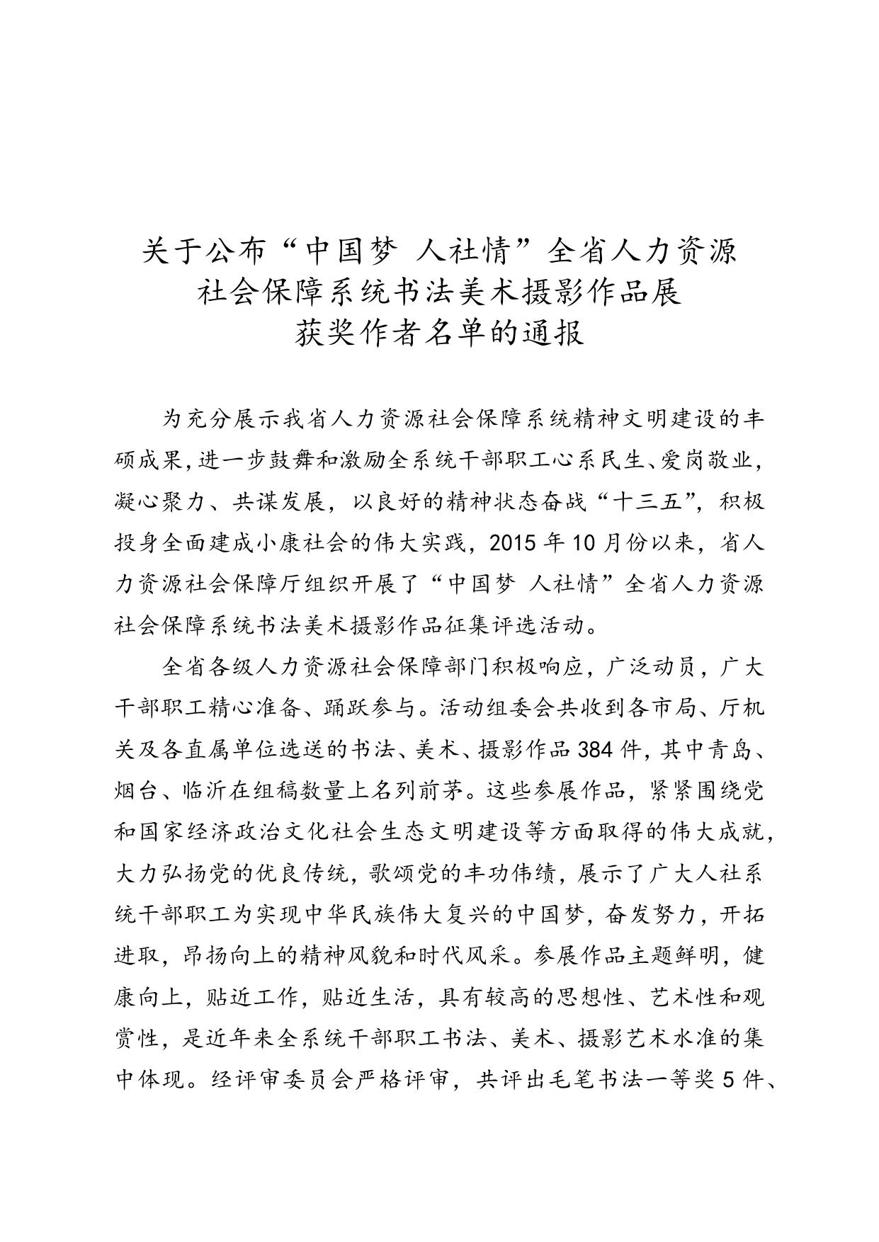 中国梦人社情全省人社系统书法美术摄影作品展获奖通报.docx