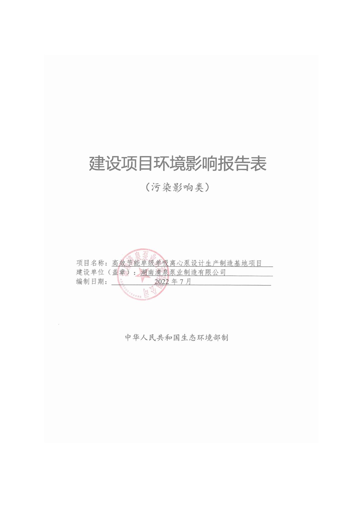 (公示稿)(全本)高效节能单级单吸离心泵设计生产制造基地项目环境影响报告表20220729.pdf