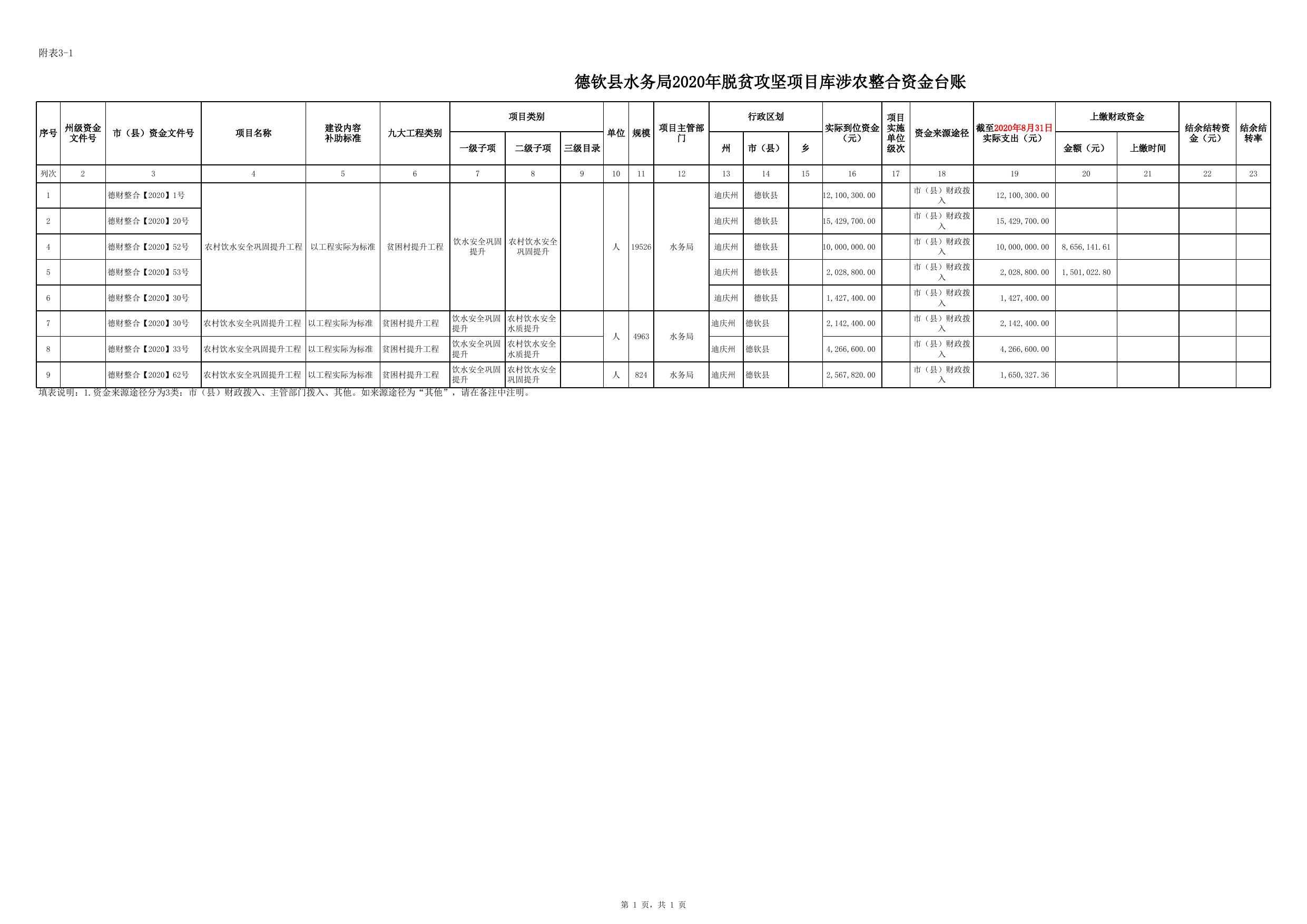 德钦县水务局2020年涉农资金台账.xlsx