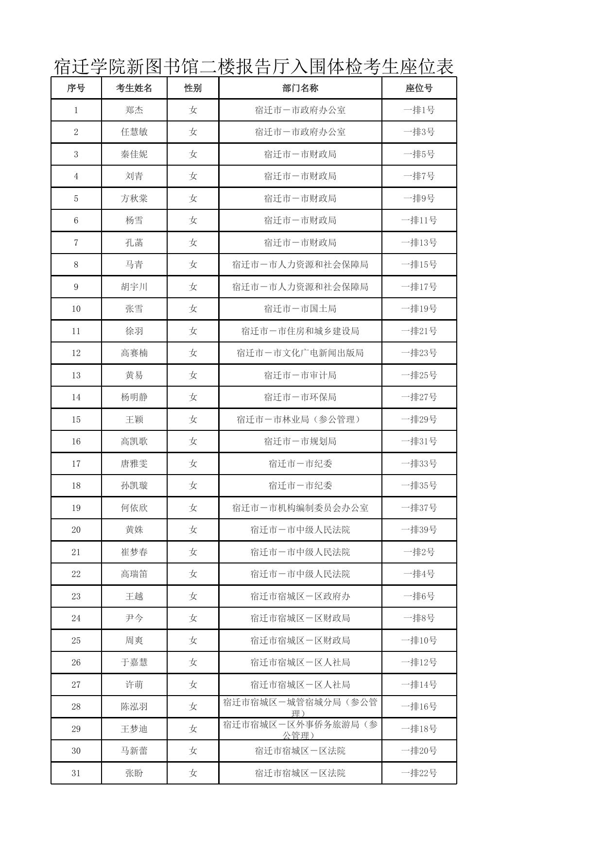 宿迁学院新图书馆二楼报告厅入围体检考生座位表.xlsx