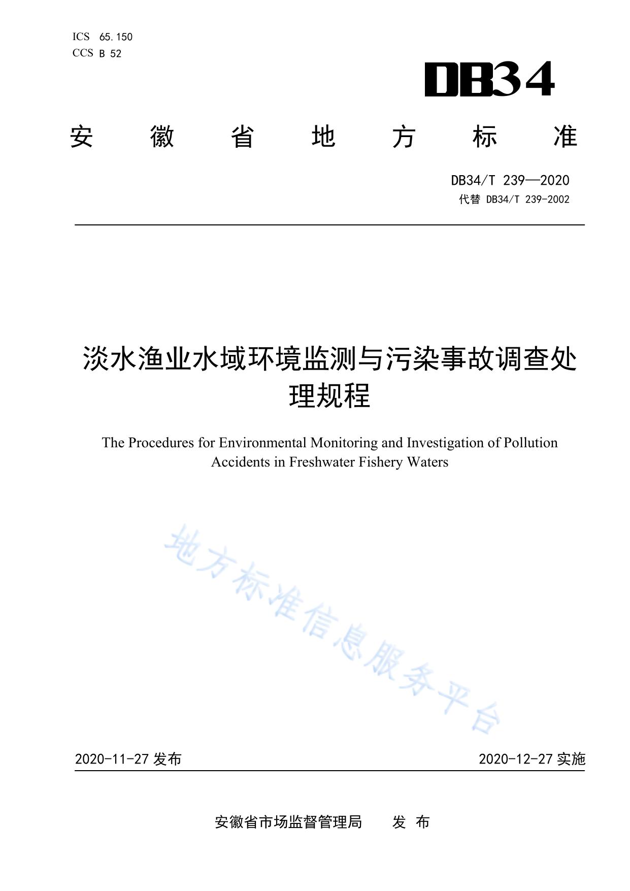 淡水渔业水域环境监测与污染事故调查处理规程