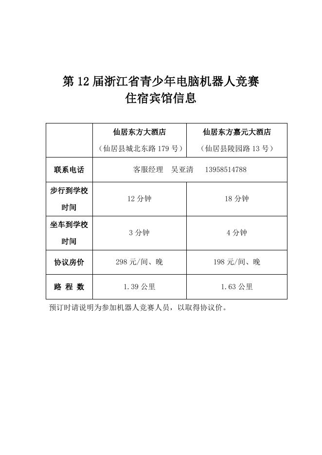 第12届浙江省青少年电脑机器人竞赛住宿宾馆信息.doc