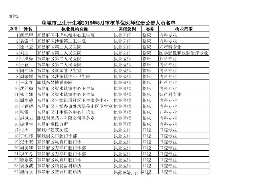 聊城市卫生计生委2016年8月审核单位医师注册公告人员名单.xls