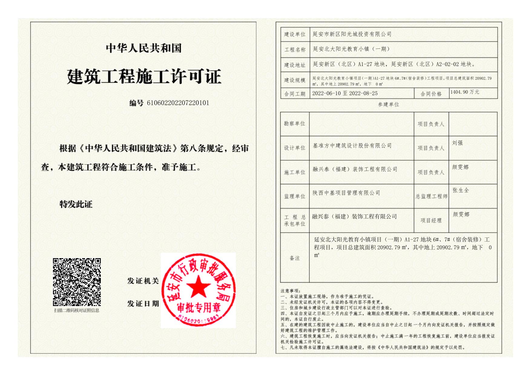 延安北大阳光教育小镇(一期)施工许可证.pdf