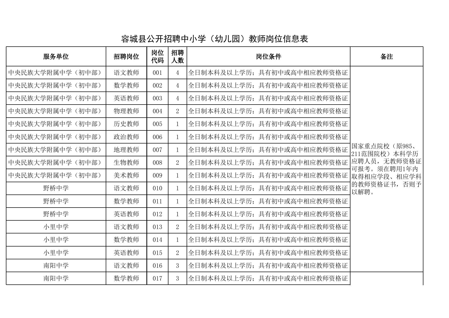 附件:《容城县公开招聘中小学(幼儿园)教师岗位信息表》.xls