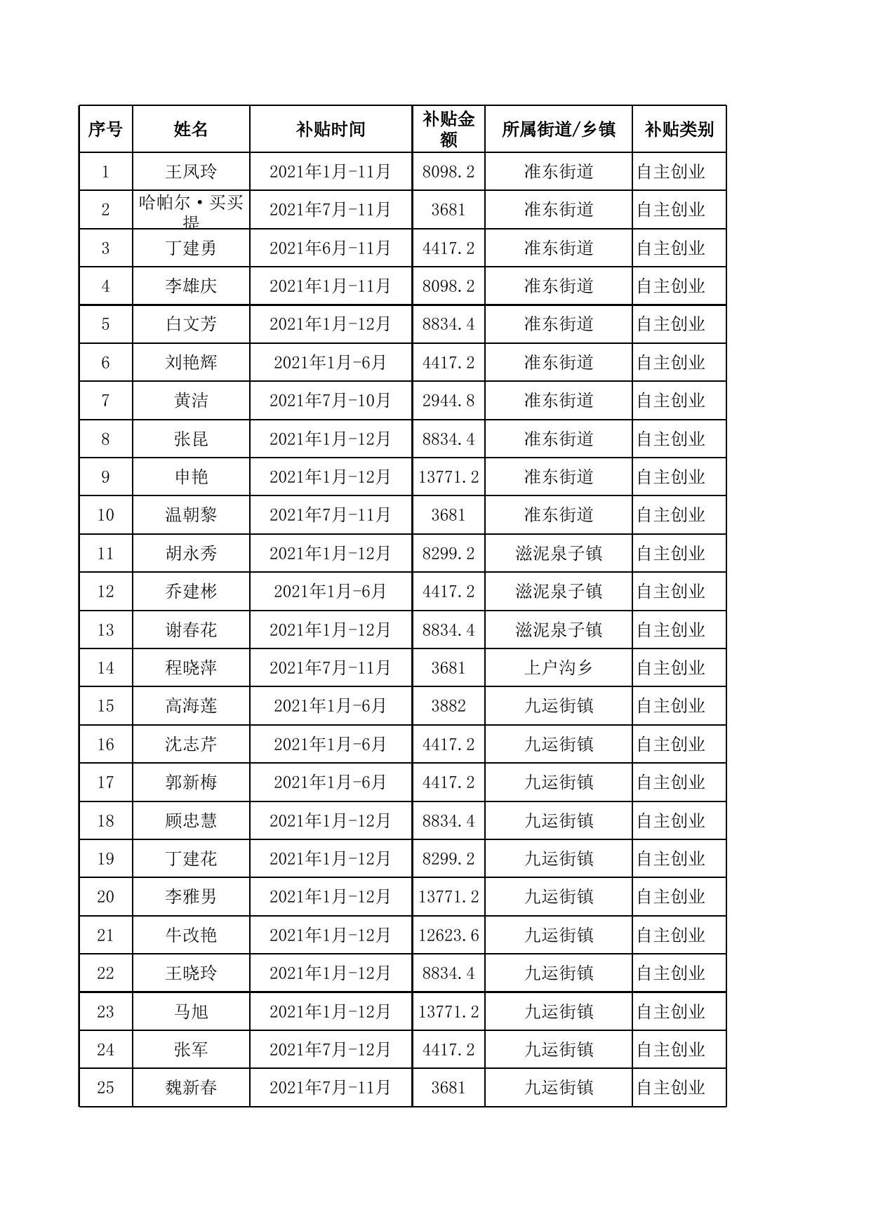 2022年自主创业社保补贴公示名单(第一批).xls