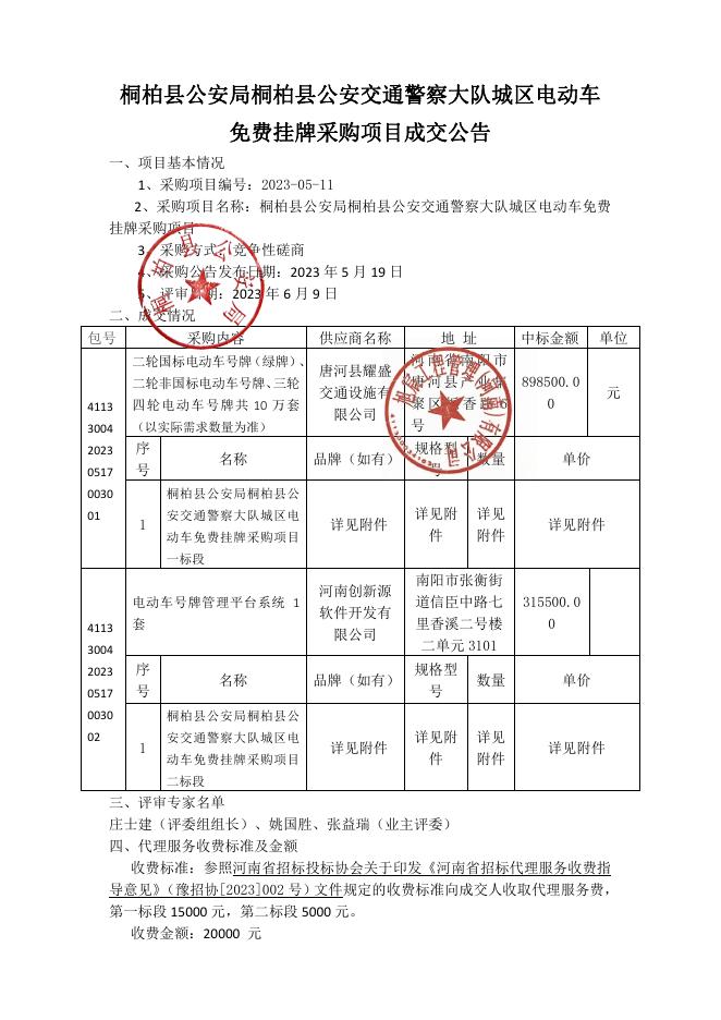成交公告--桐柏县公安局桐柏县公安交通警察大队城区电动车免费挂牌采购项目.pdf