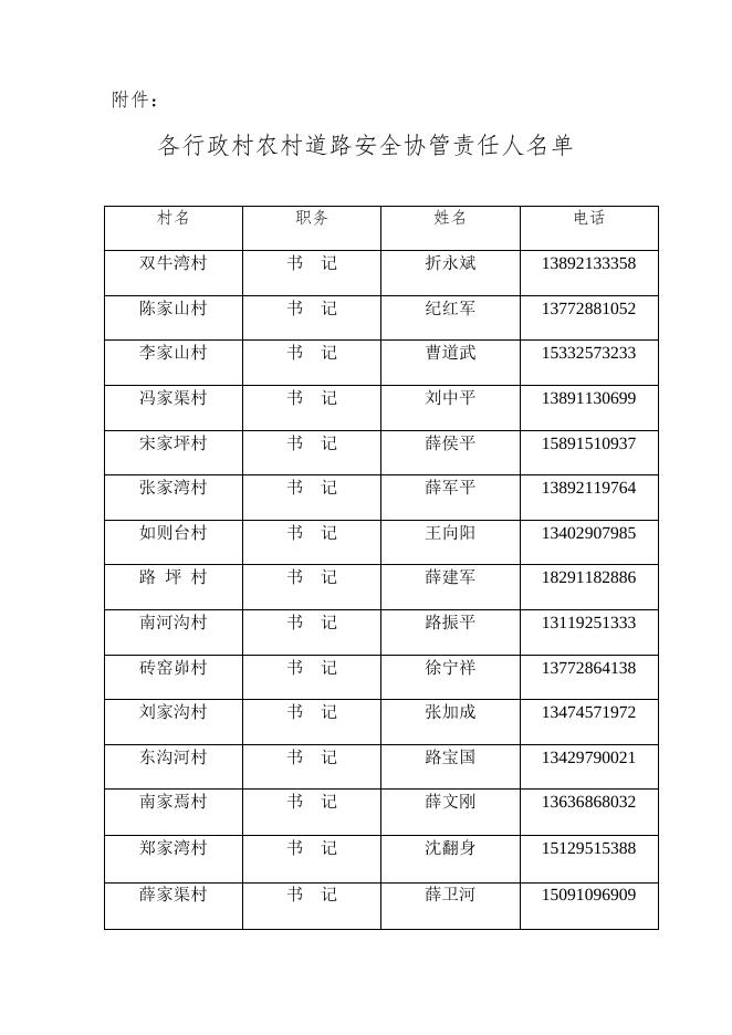 各行政村农村道路安全协管责任人名单.doc