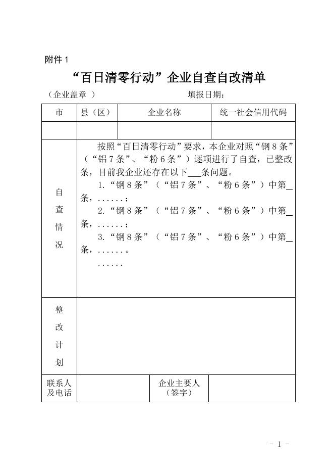 “百日清零行动”企业自查自改清单.doc