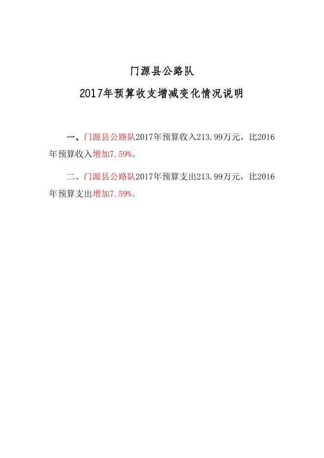 附件:门源县公路队2017年度预算收支增减变化情况整改表.docx