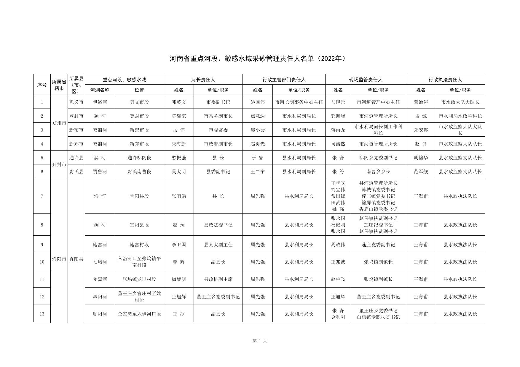附件:河南省河道采砂管理重点河段、敏感水域责任人名单(2022年).xls