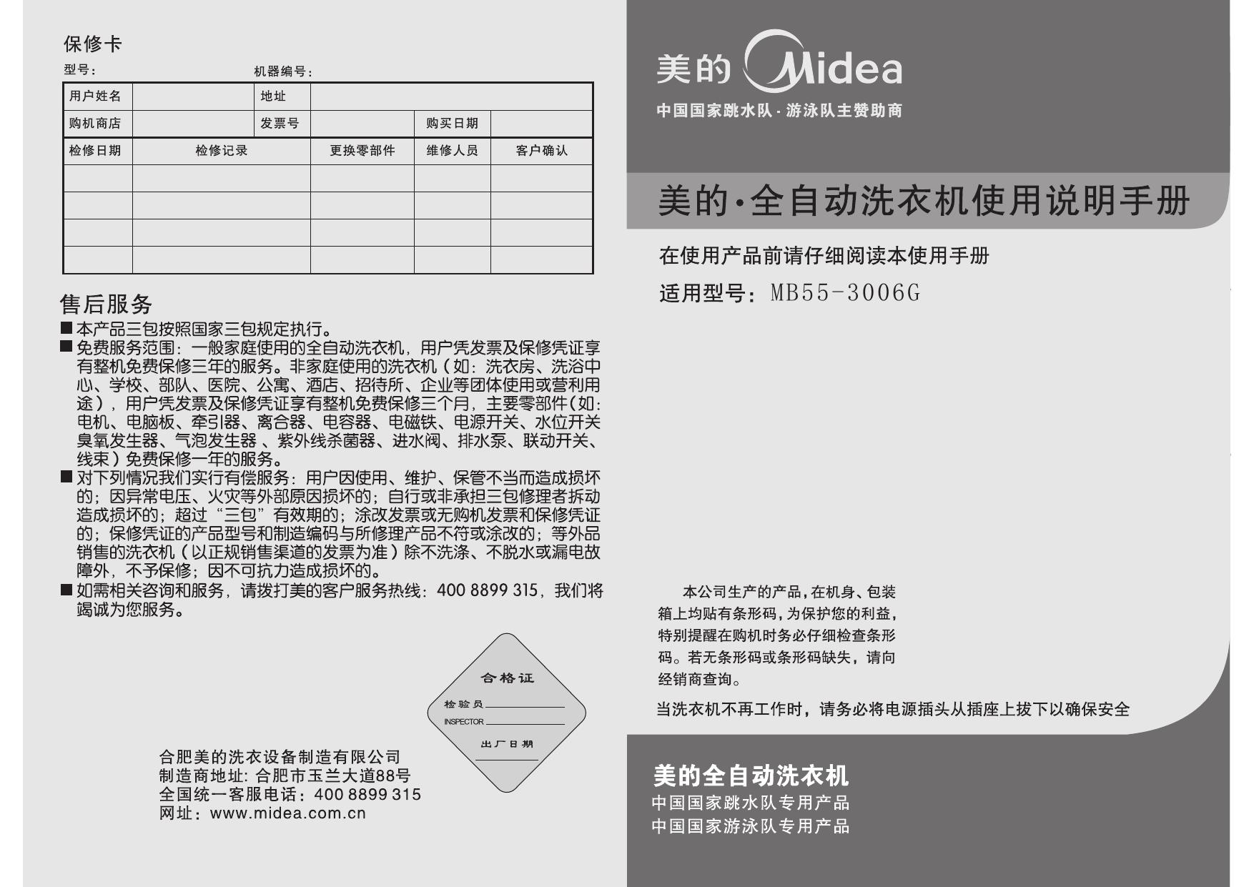 美的MB55-3006G洗衣机使用说明书