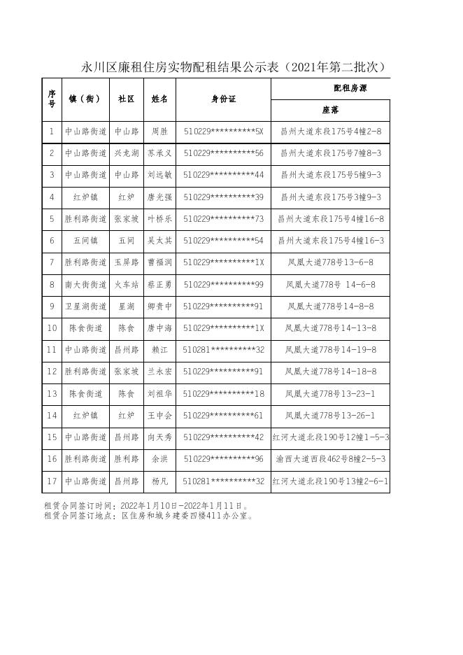 2021年廉租房第二批次实物配租结果公示.xlsx