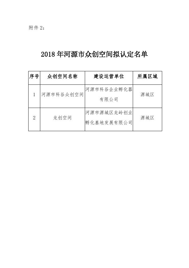 附件2:2018年河源市众创空间拟认定名单.docx