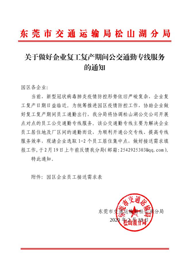 关于做好企业复工复产期间公交通勤专线服务的通知.pdf