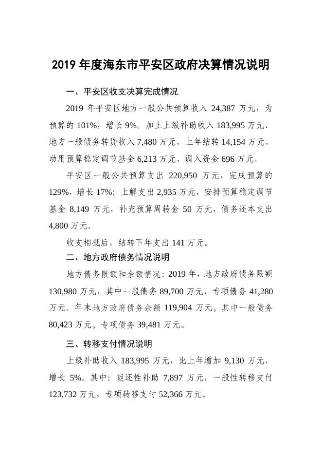 2019年度海东市平安区政府决算情况说明.pdf