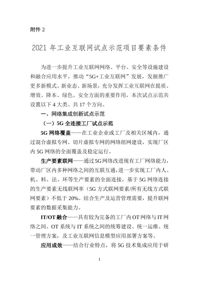 附件2:2021年工业互联网试点示范项目要素条件.doc