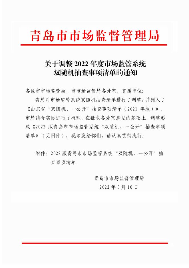 关于调整2022年度市场监管系统双随机抽查清单的通知.pdf