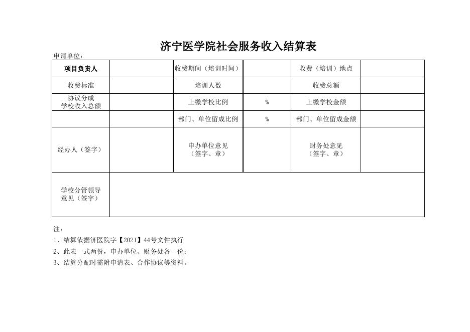 社会服务收入项目申请表及结算表.xls