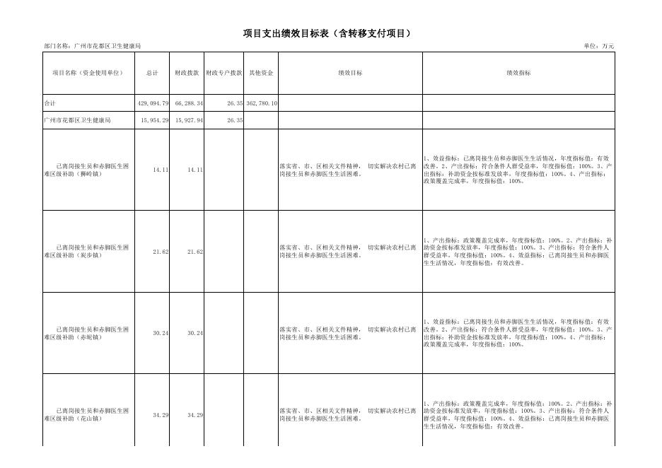 广州市花都区卫生健康局2023年项目支出绩效目标表(含转移支付项目).pdf
