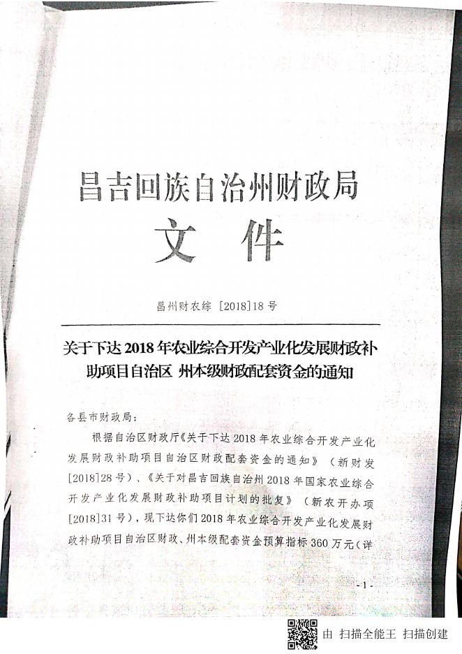 关于下达2018年农业综合开发产业化发展财政补助项目自治区 州本级财政配套资金的通知.pdf