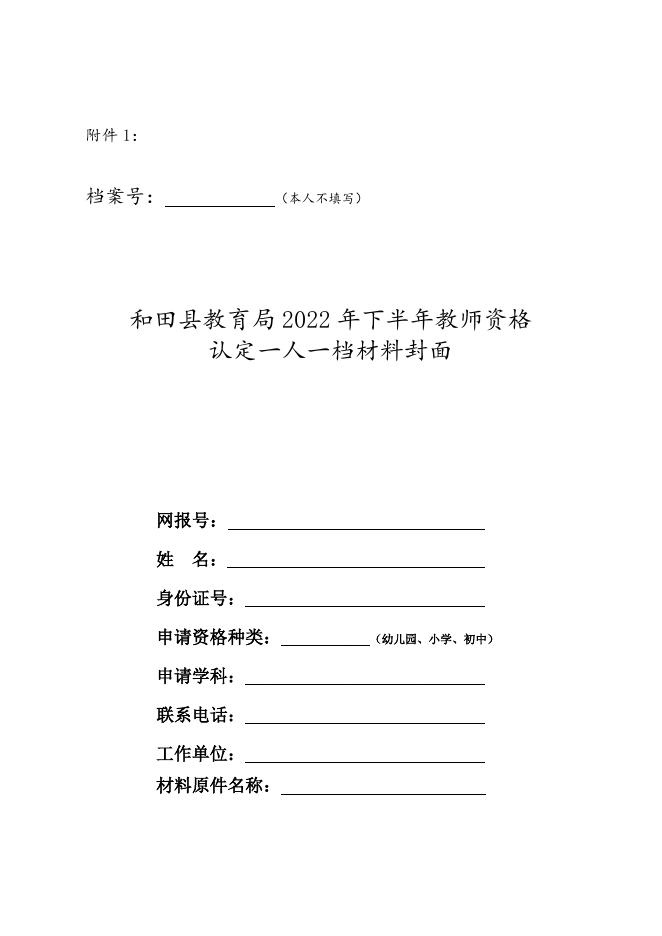 附件1:和田县教育局2022年下半年教师资格认定一人一档材料封面.doc