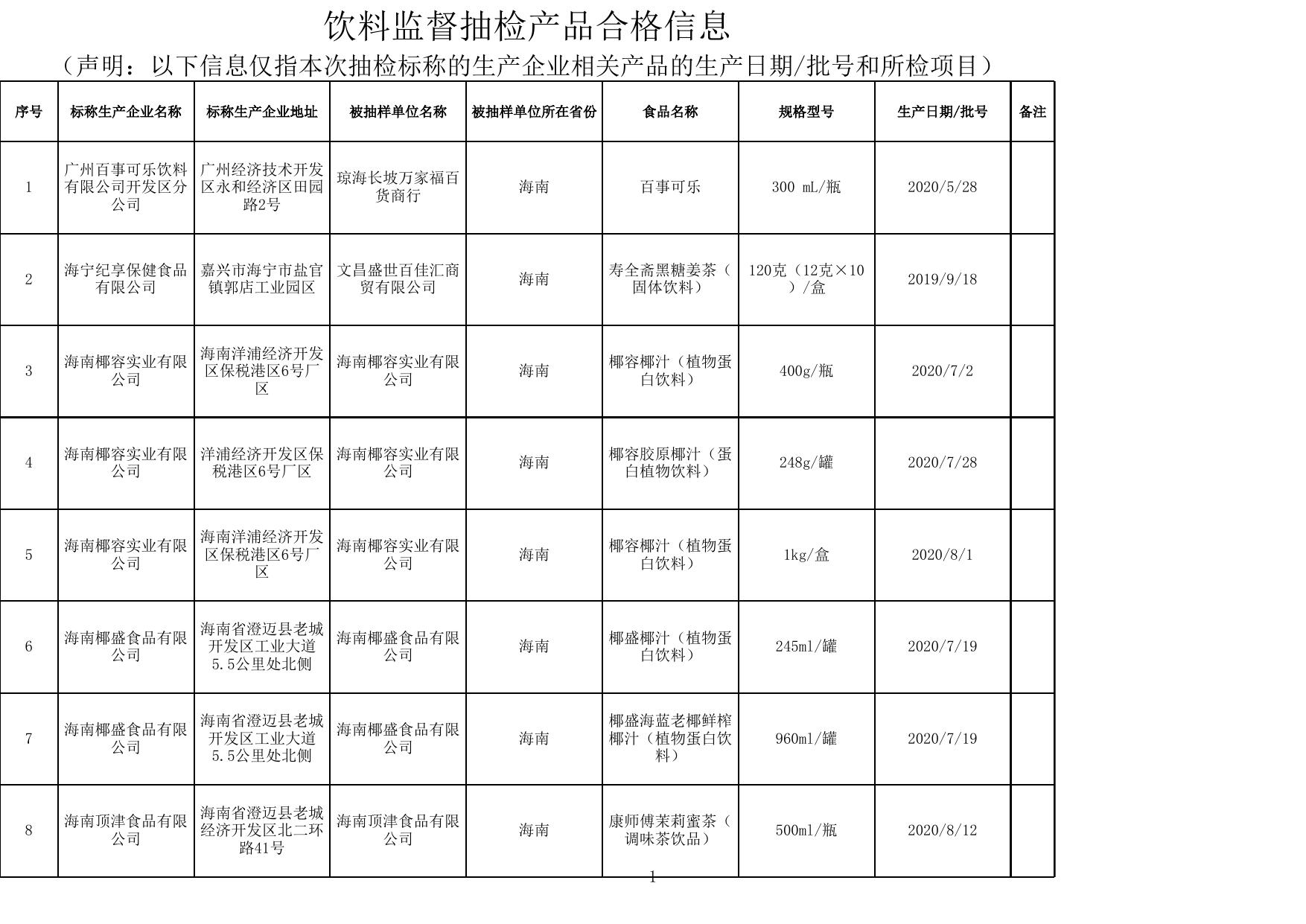 饮料监督抽检合格产品信息.xls