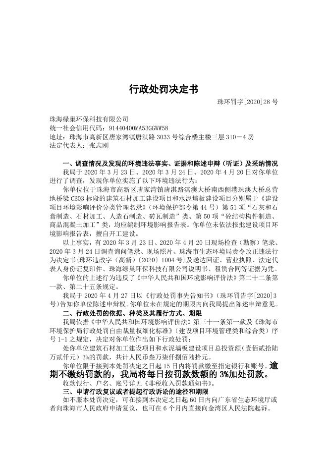 行政处罚决定书28号(绿巢环保科技)未批先建.doc