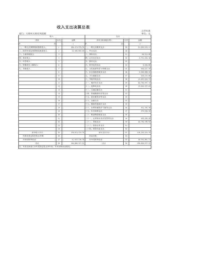 大理州大理市凤仪镇部门2019年度部门决算公开表.xls