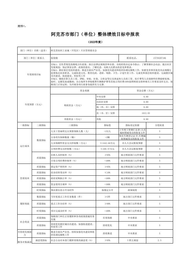 37、阿克苏地区阿克苏纺织工业城(开发区)片区管理委员会2023年部门单位整体支出绩效目标表.pdf