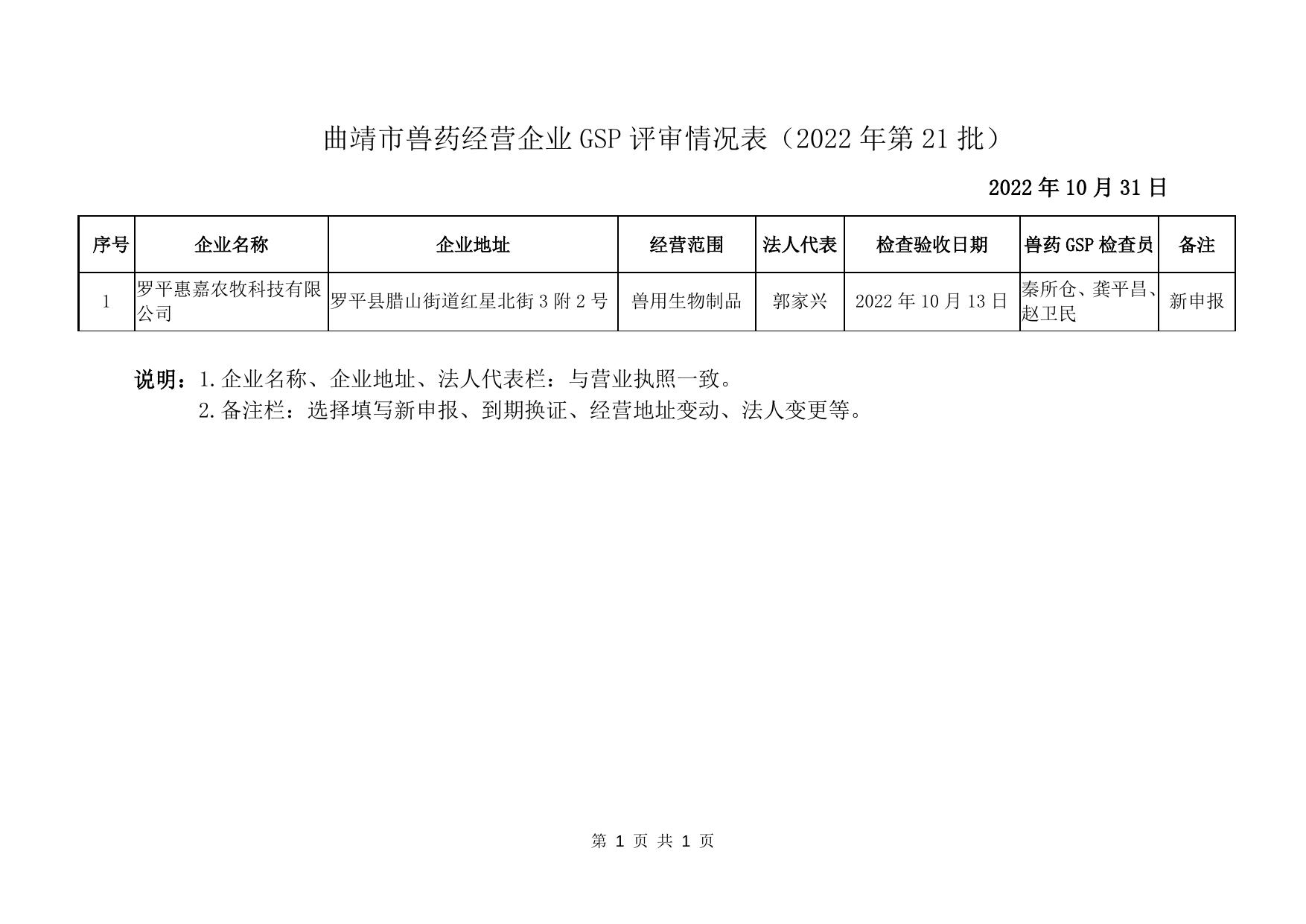 曲靖市兽药经营企业GSP评审情况表(2022年第21批).doc