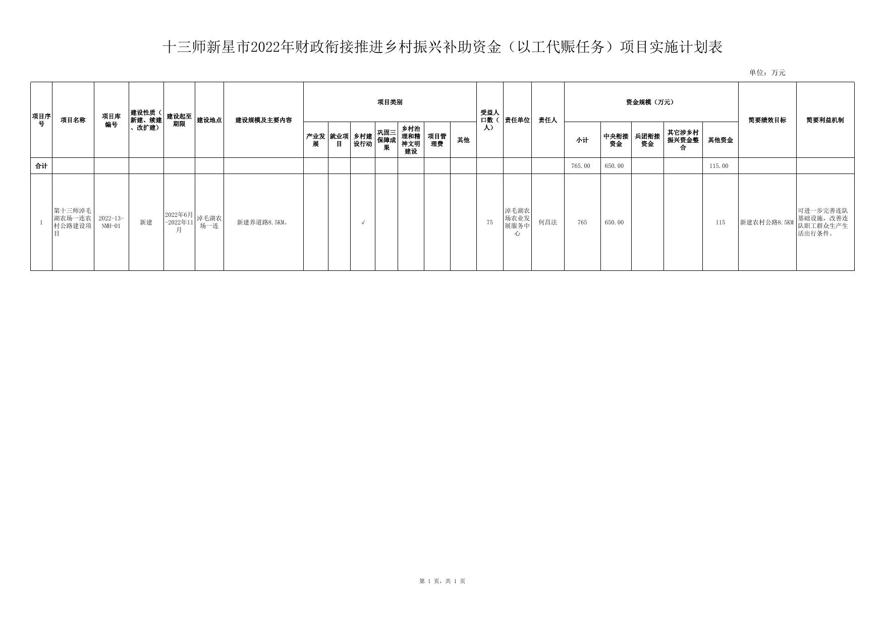 师市2022年财政衔接推进乡村振兴补助资金(以工代赈任务)项目实施计划表.xls